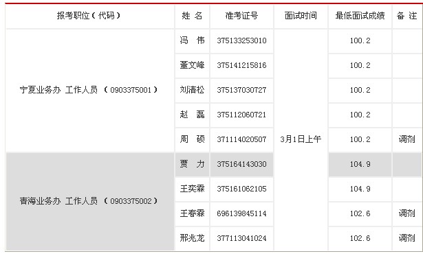 因部分考生放棄公務員面試資格,根據(jù)中組部、人力資源社會保障部、國家公務員局關(guān)于公務員考試錄用工作的有關(guān)規(guī)定,遞補以下人員參加面試。