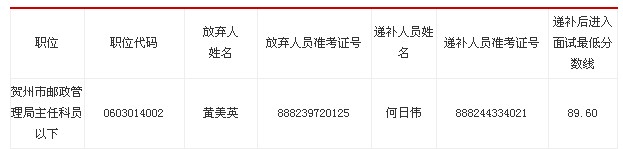 2013年國家公務員面試遞補公告:廣西郵政管理局