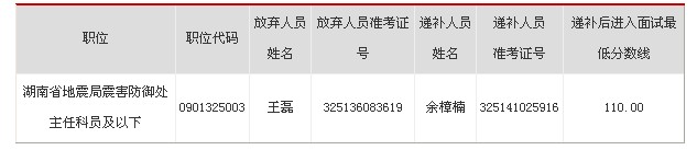 請遞補考生按照國家公務員局網站上發布的《湖南省地震局2013年公務員錄用面試公告》有關要求準備面試事宜。