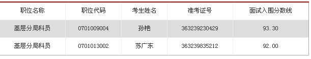 因部分考生放棄面試資格,根據公務員招考有關規定,擬在公共科目筆試合格的考生中,按照筆試成績從高到低的順序,遞補以下考生為面試人選: