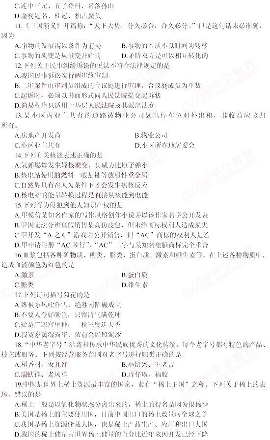 摘要 2013年黑龍江省公務員考試《行測》試卷(真題)