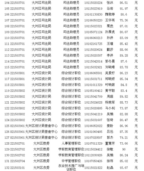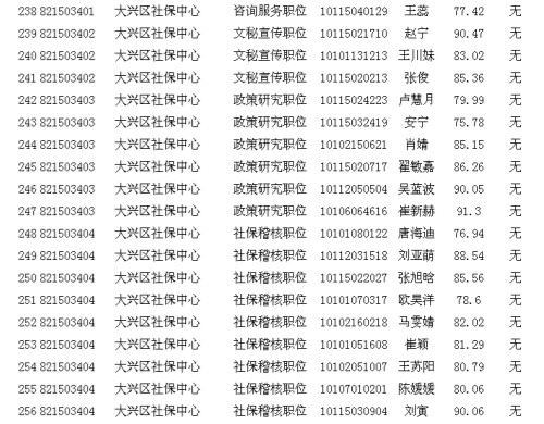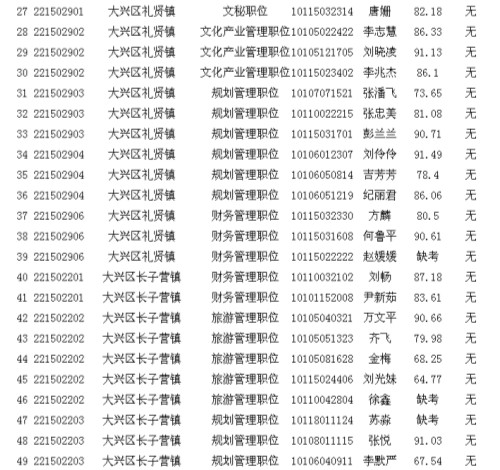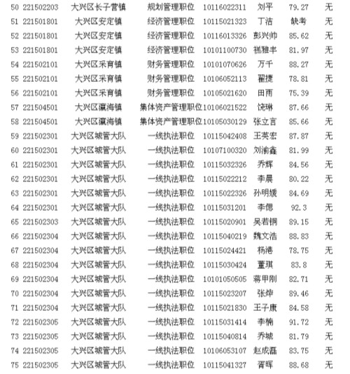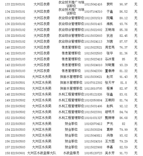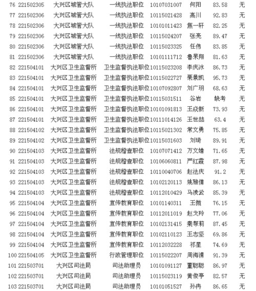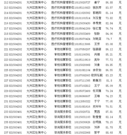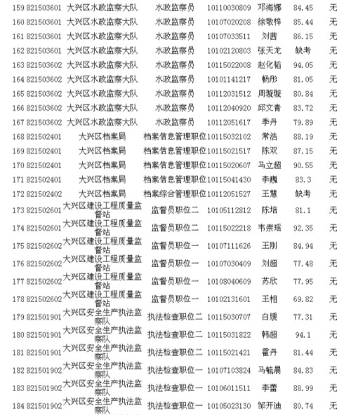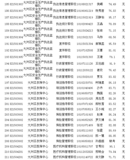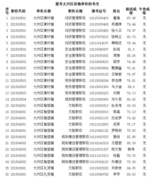 2013年北京市大興區(qū)其他單位考生面試成績公示