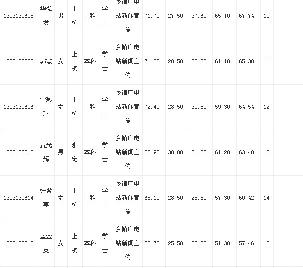 摘要 2013年福建上杭縣廣電局事業單位招聘成績及體檢對象公布