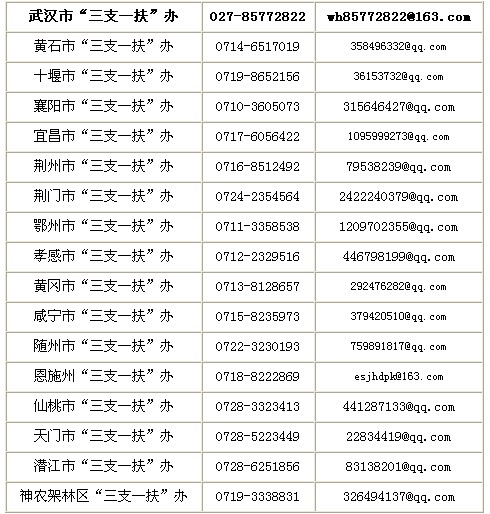 省“三支一扶”辦綜合咨詢電話:027-12333-2-0