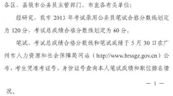 摘要 2013年廣州公務員筆試合格分數線劃定為60分。
