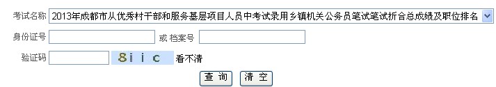 點擊查看:2013年成都定向鄉鎮公務員筆試成績及職位排名查詢入口