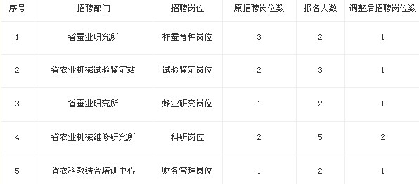 根據《黑龍江省農業委員會直屬事業單位2013年上半年公開招聘人員公告》的有關要求及網上報名情況,經研究,調整以下崗位: