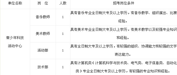 3、熱愛青少年工作,有較強的語言表達能力和文字綜合能力,具有招考崗位所需的專業和技能條件;