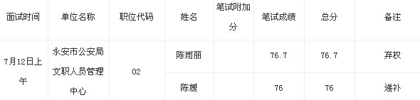 2013年永安市屬事業(yè)單位招聘面試遞補(bǔ)名單(三)
