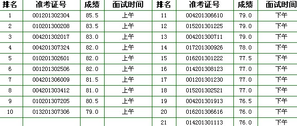 (二)報考市殘聯機關文字綜合崗位考生筆試成績前21名考生,面試時間為: