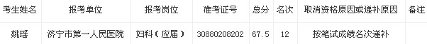 2013年山東濟寧市屬事業單位取消資格及遞補名單(第五批)
