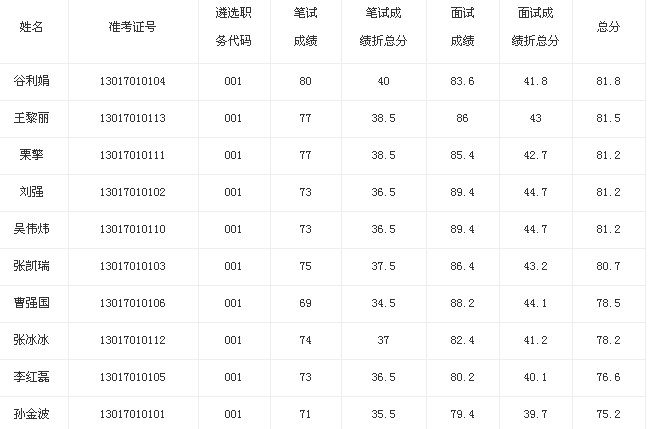 根據《洛陽市工業和信息化局公開遴選公務員公告》,現將遴選成績公示。進入體檢人員名單另行通知。