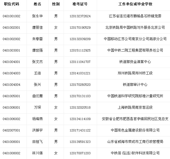 2013年原鐵道部擬錄用人員公示