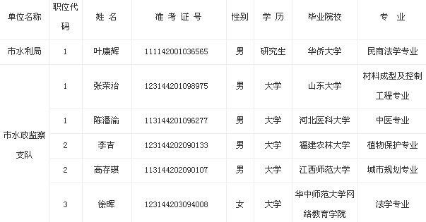 摘要 2013年福建福州市水利局擬錄用公務員名單公示