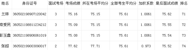 根據(jù)《2013年江西省選聘高校畢業(yè)生到村任職工作方案》要求,我市2013年選聘高校畢業(yè)生到村任職考察人員因考生自行放棄等原因產(chǎn)生了4名空缺,按考生面試成績(jī)從高分到低分依次遞補(bǔ)的原則,確定如下人員(具體名單見附件)進(jìn)入考察遞補(bǔ)入闈人員名單。遞補(bǔ)入闈人員經(jīng)體檢合格后,需于8月26日前將個(gè)人檔案和入黨材料寄達(dá)或直接交至市委組織部基層組織科(市水務(wù)局老辦公樓5樓)。