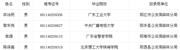 2013年廣東陽江市擬錄用公務員名單公示(第四批)