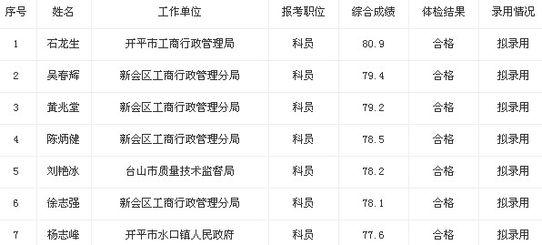 2013年廣東江門市人力資源社會保障局?jǐn)M錄用公務(wù)員公示