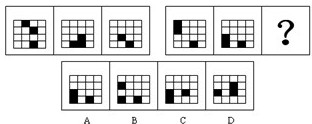 答案:A 解析:本題屬于位置類,主要考察平移。左側小黑格沿著外層依次逆時針移動3格,右側小黑格沿著外層依次逆時針移動2格。所以選擇A選項。