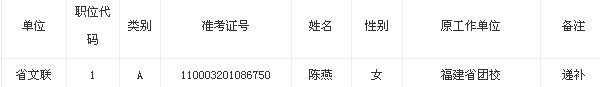 根據《公務員錄用規定(試行)》和《福建省2013年度考試錄用公務員工作實施方案》的要求,在筆試、面試、體檢和考察合格的基礎上,擬錄用考生陳燕(遞補)為福建省文聯機關工作人員。現向社會予以公示。公示期間,如有問題,請及時反映。