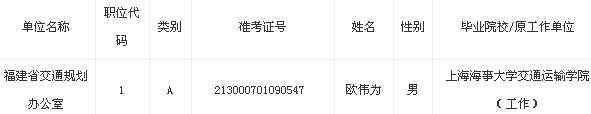 根據(jù)《公務(wù)員錄用規(guī)定(試行)》和《福建省2013年度考試錄用公務(wù)員工作實施方案》的要求,在筆試、面試、體檢和考察合格的基礎(chǔ)上,擬錄用歐偉為同志為福建省交通規(guī)劃辦公室工作人員,現(xiàn)向社會予以公示。公示期間,如有問題,請及時反映。