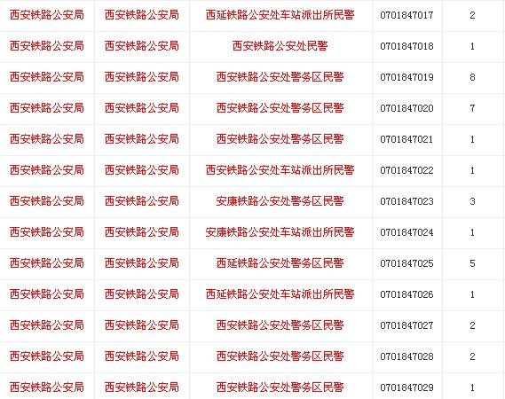 2014年國家公務員考試西安鐵路公安局職位表公布如下: