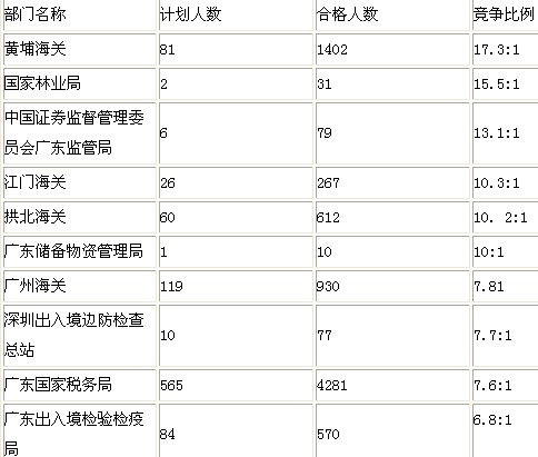 2014年國家公務員考試報名最具競爭前十部門(廣東)