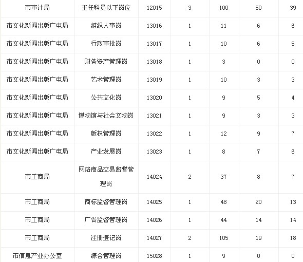 摘要 2013年湖北武漢市直機關公務員報名人數統計(10月21日)