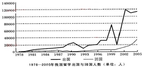 D.從1980-2005年這一期間,并非每一年的留學(xué)出國(guó)人數(shù)都比回國(guó)人數(shù)多