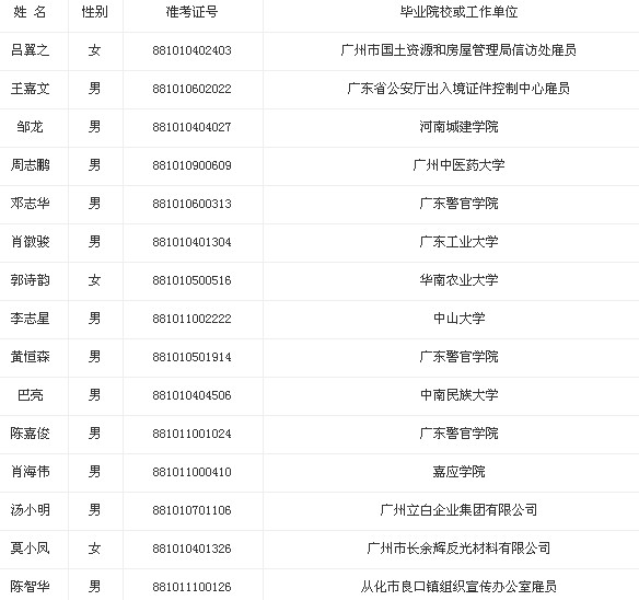 2013年廣東省廣州市公安局?jǐn)M錄用公務(wù)員公示