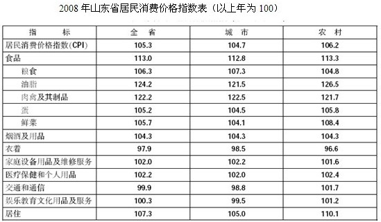Ⅰ。2008年山東省城鄉居民分類消費價格與居民消費分類價格變化趨勢完全一致