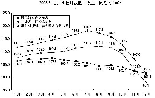 ?、?。2008年在圖中所示的幾個價格指數中,山東省原材料、燃料、動力購進價格指數波動最大