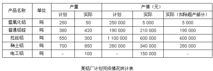 4.稀土鋁的實際產值比計劃產值增加了多少?( )