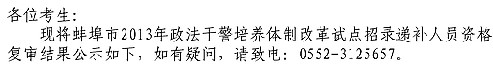 摘要 2013年安徽蚌埠政法干警遞補資格復審結果