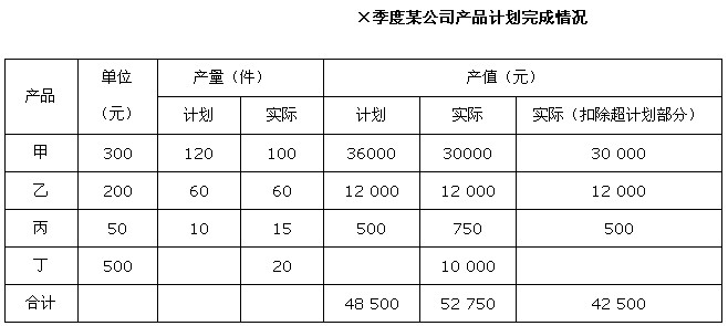下列是×季度某公司產品計劃完成情況的統計表,請回答表后1~5題。