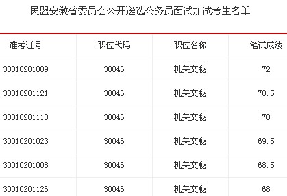 按照筆試成績從高分到低分,按6:1比例確定面試加試人選(面試加試人員名單附后)。進入面試加試人選最后一名如有多名考生成績相同的,則一并進入面試加試。