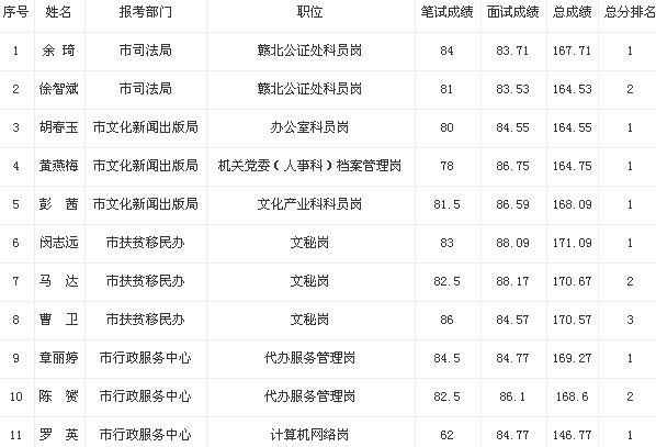 摘要 2013年下半年江西省九江市直行政單位公務員擬遴選名單公告
