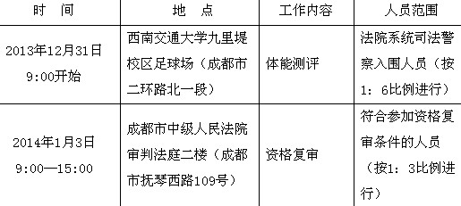 2014年四川省成都市法院系統公務員體能測評及資格復審公告