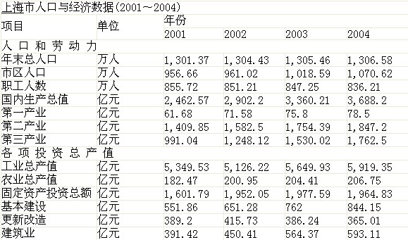 B. 2001~2004年,上海市農業總產值都呈上升趨勢