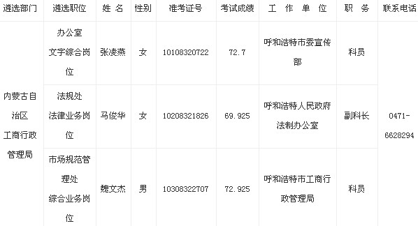 監督電話:內蒙古自治區公務員局 0471―6946330。