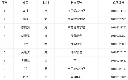 2013年湖南省商務廳公務員擬調人員名單公示