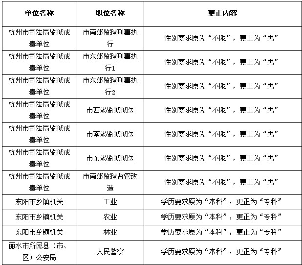 因工作人員失誤,《全省各級機關考試錄用公務員招考計劃一覽表》中個別職位資格條件有誤,現已更正。現將更正內容通知如下: