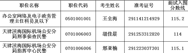 我局在2014年度考試錄用公務員首次面試確認中,有3名考生放棄面試資格,根據公務員招考有關規定,擬在公共科目筆試合格的考生中,按照筆試成績從高到低的順序,遞補以下考生為面試人選: