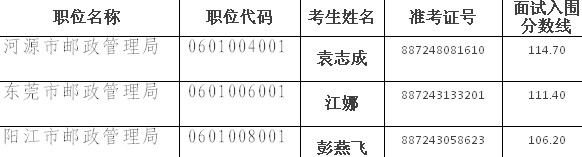 廣東省郵政管理局2014年考錄公務員遞補面試公告