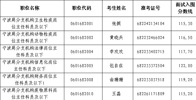 請以上考生按照《寧波出入境檢驗檢疫局2014年度考試錄用公務員面試公告》的要求,盡快準備有關材料,在2014年2月14日之前遞交相關材料,并按要求參加資格復審和面試。