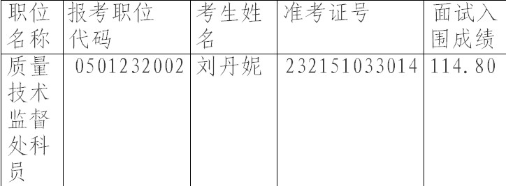 因部分進入我局面試名單的考生自愿放棄面試資格,按照公務員考試錄用工作有關規定,從公共科目筆試合格考生中,按筆試分數排序依次遞補以下面試人員: