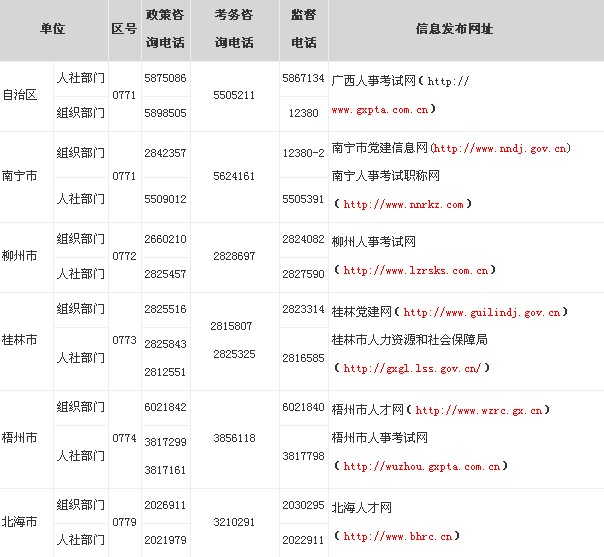2014年廣西選調生考試各部門咨詢電話公布如下: