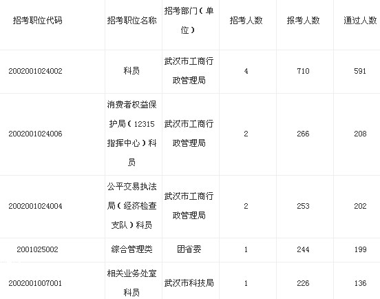 2014年湖北省公務員考試報名十大熱門職位(3月18日)