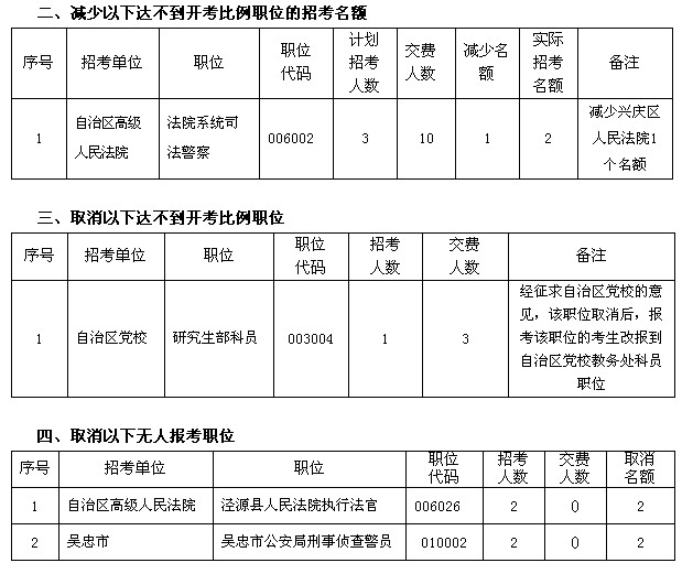 2014年全區考試錄用公務員(參公單位工作人員)報名結束后,有部分職位無人報考或未達到筆試開考比例。根據招考公告,經研究,現就有關事項公告如下:
