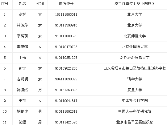 根據中組部、人力資源和社會保障部、國家公務員局《中央機關及其直屬機構2014年度考試錄用公務員工作實施方案》的要求,經筆試、面試、體檢、考察等工作程序,我局擬錄用高杉等11名同志為機關工作人員。