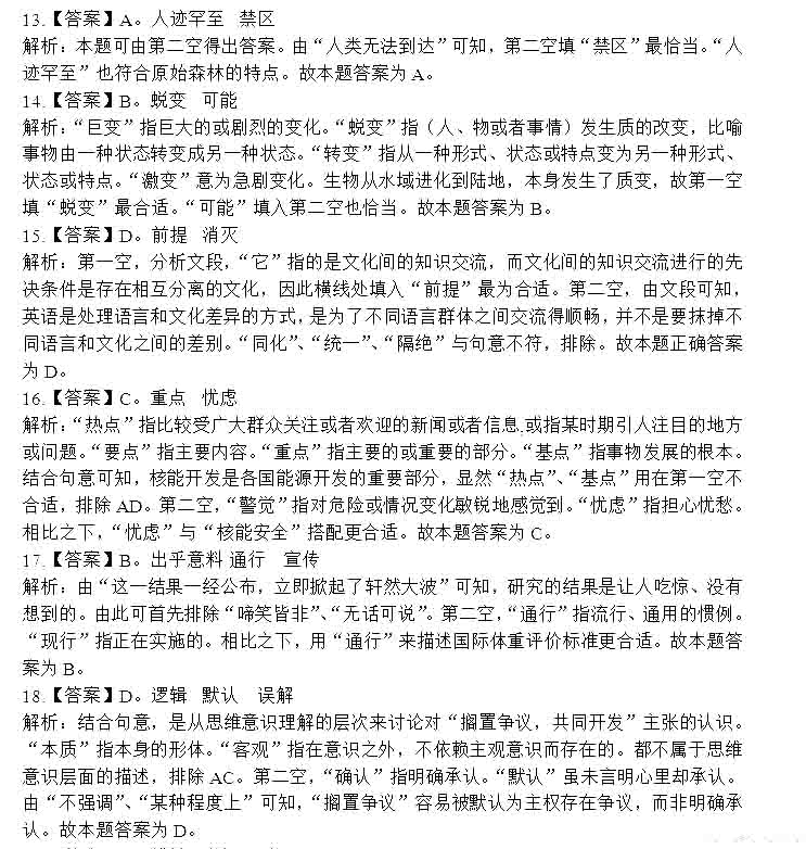 2014年遼寧省公務(wù)員考試行測(cè)答案:言語(yǔ)理解